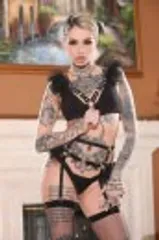 Inked Leigh Raven gets a DP all black monster cock gangbang